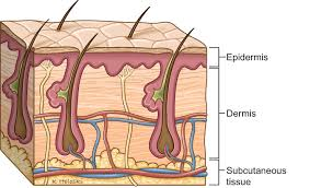 The skin is composed of three layers – epidermis which is the outermost layer of the skin and responsible for protecting us from harm. The dermis – which is the middle layer of the skin that consists of connective tissue and cushions the body against stress and strain. Hypodermitis is the last in the deepest layer of the skin.